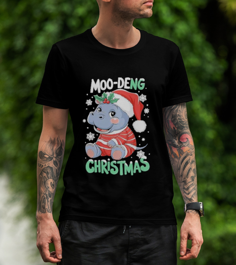 Moo-Deng Hippo Christmas Baby Pigmy Zoo Family T-Shirt