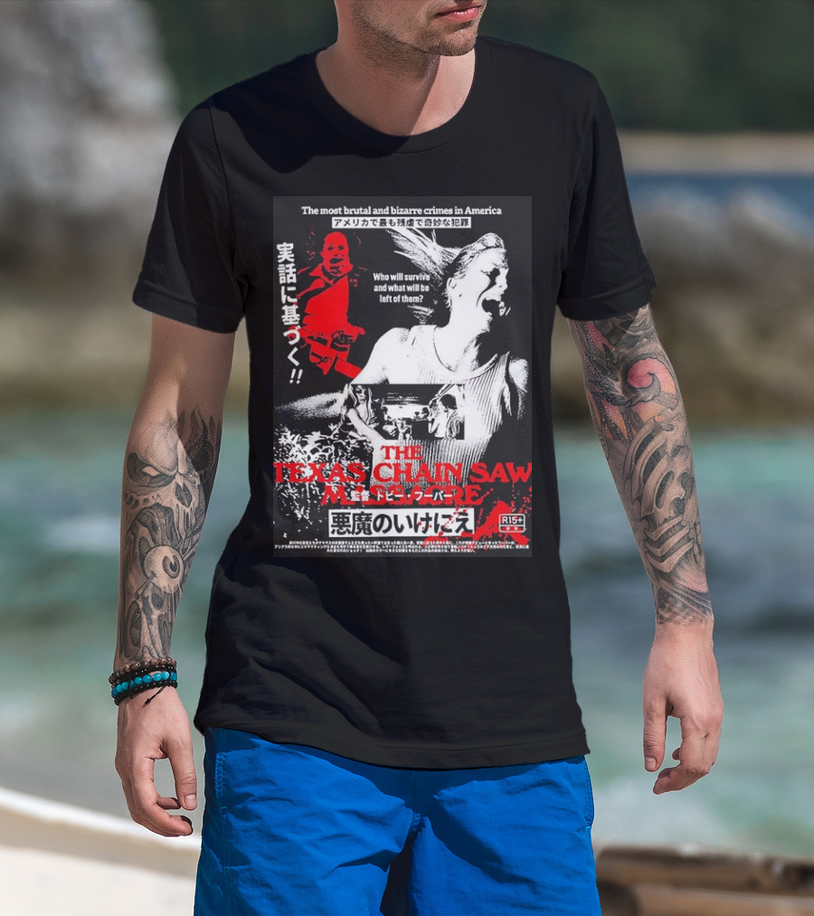 The The Most Brutal and Bizarre Crimes in America The Texas Chain Saw Massacre Real Survival Horror Film R15+ T-shirt is designed for everyday wear and a consistent fit. Fabric is pre-shrunk ring-spun cotton with durable stitching. See the size chart below for exact measurements.