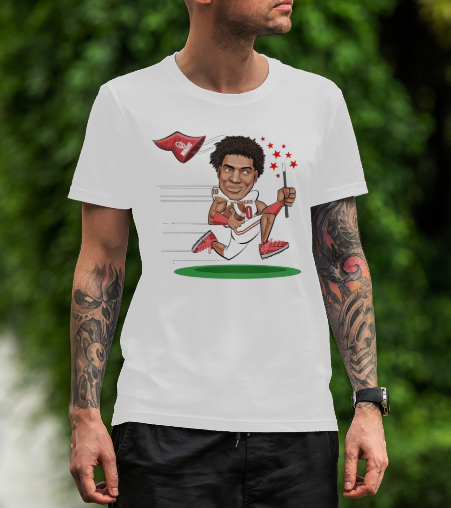 The Oklahoma Sooners Kip Lewis Magic to the Rescue T-shirt is designed for everyday wear and a consistent fit. Fabric is pre-shrunk ring-spun cotton with durable stitching. See the size chart below for exact measurements.