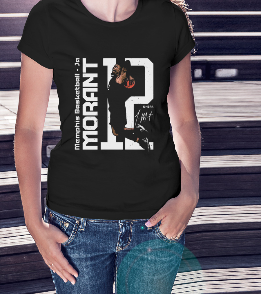 The Memphis Basketball Ja Morant NBPA Signature 12 T-shirt is designed for everyday wear and a consistent fit. Fabric is pre-shrunk ring-spun cotton with durable stitching. See the size chart below for exact measurements.