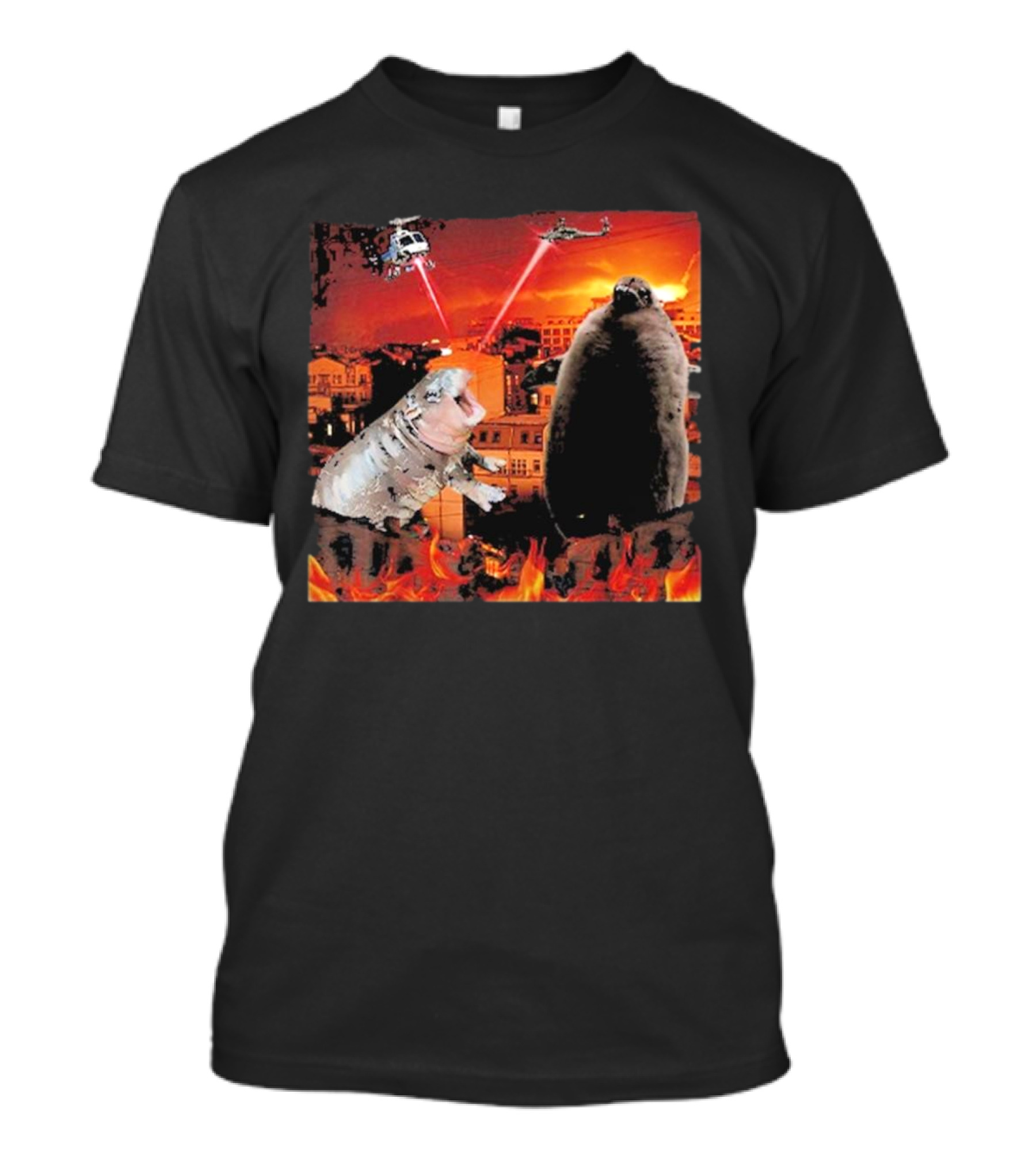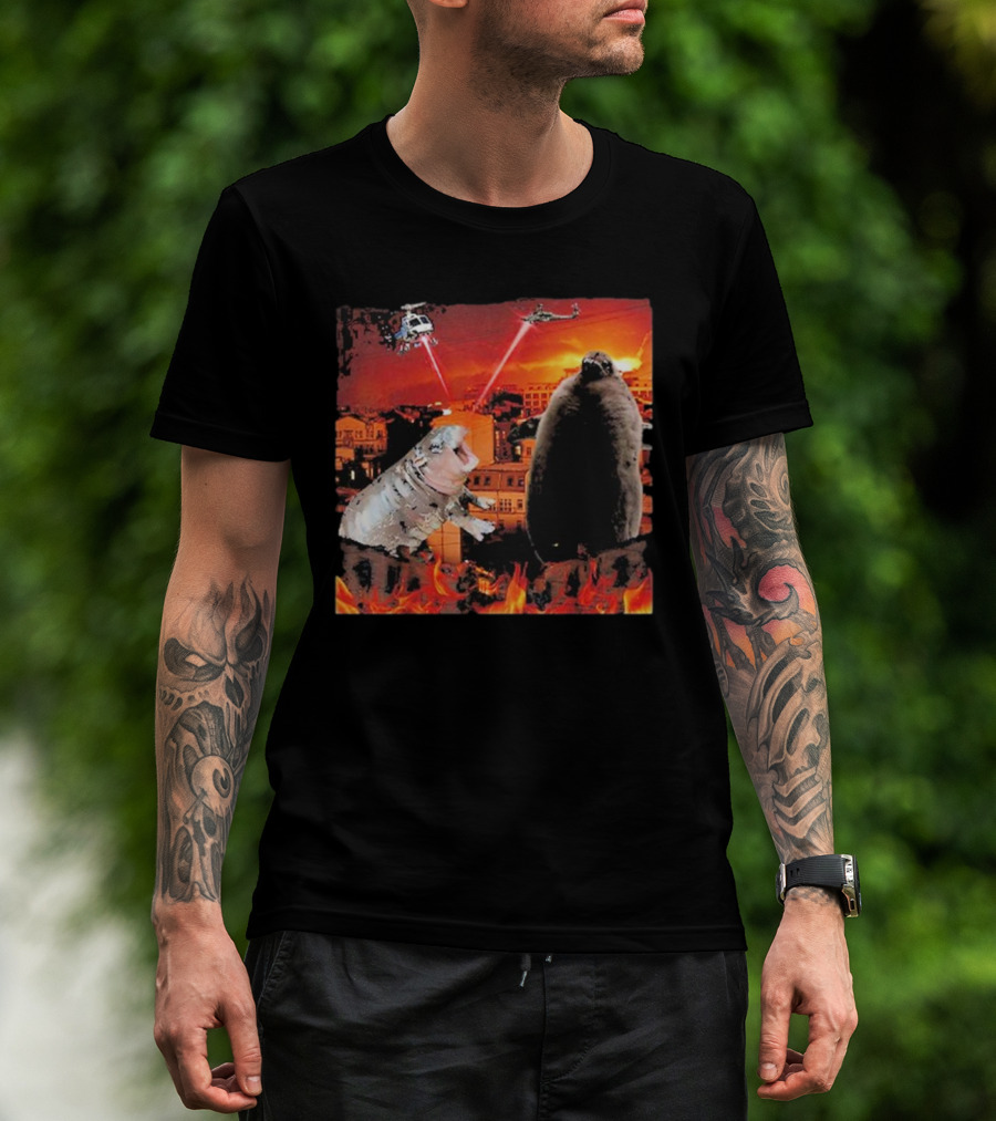 Moo Deng Pesto Helicopter Laser Battle Destroy City Fire Scene T-Shirt