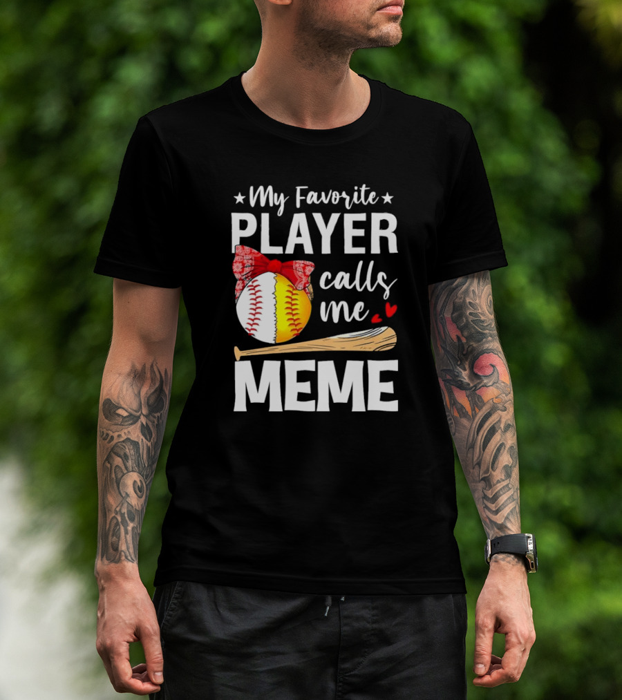 My Favorite Player Calls Me Meme Baseball Softball Bow Heart Bat T-Shirt