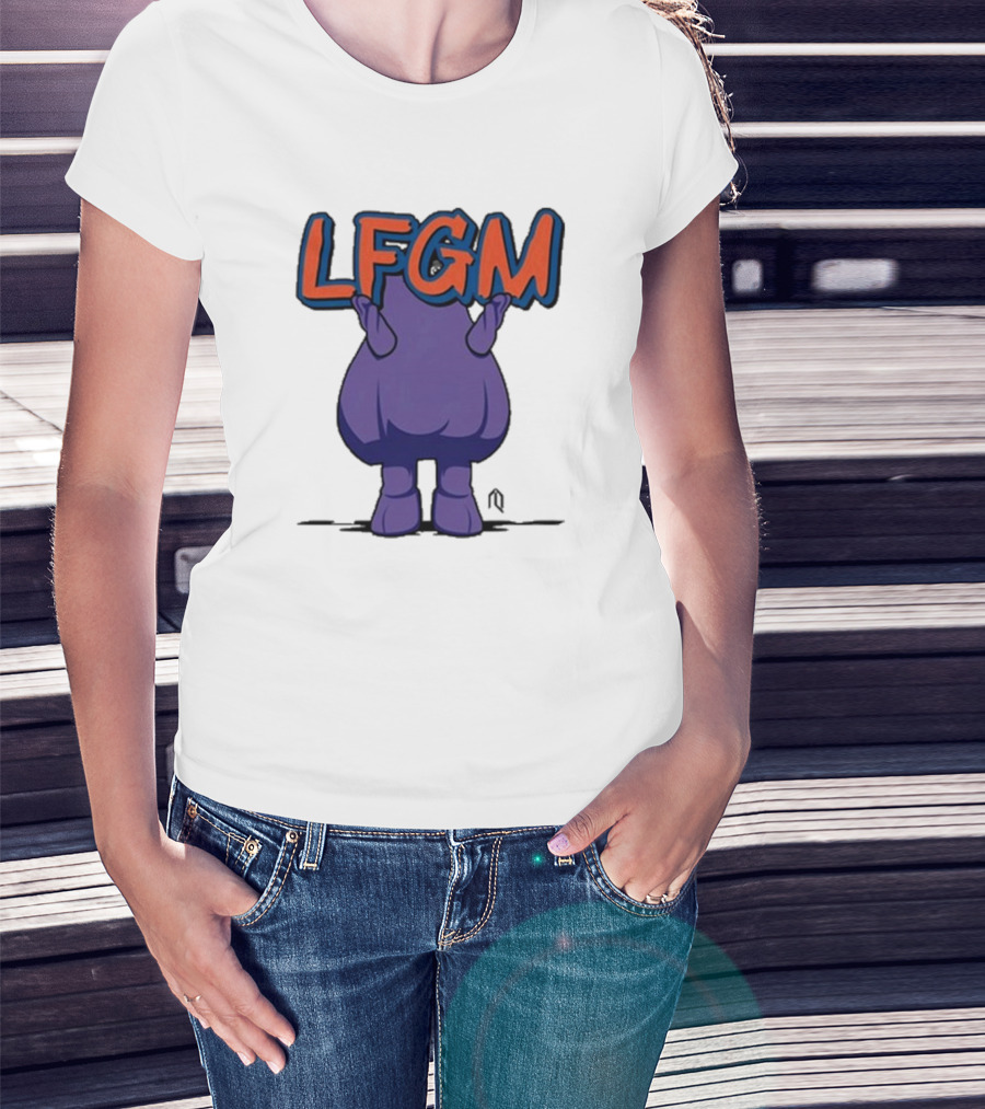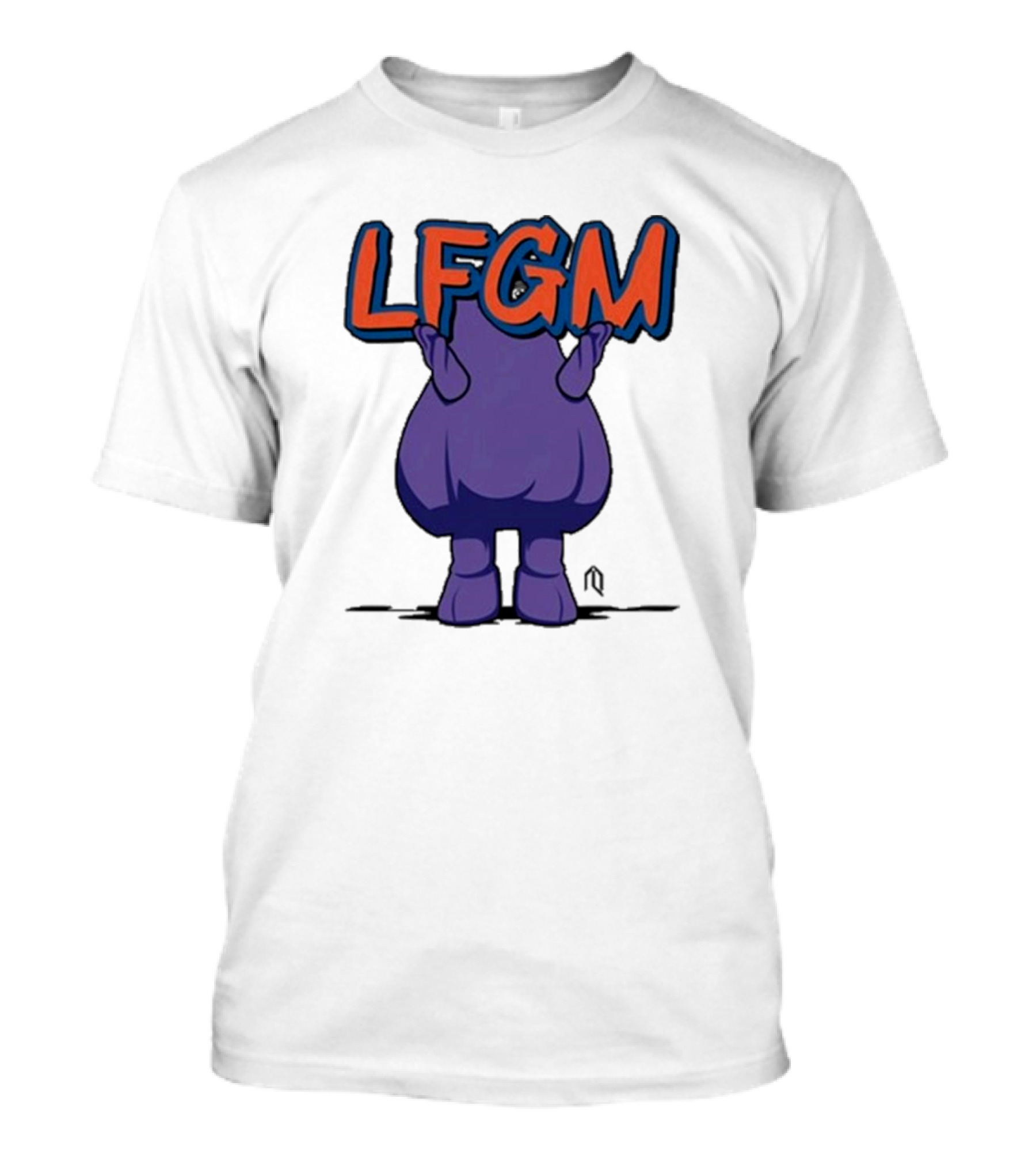 The New York Mets LFGM Grimace Athlete T-shirt is designed for everyday wear and a consistent fit. Fabric is pre-shrunk ring-spun cotton with durable stitching. See the size chart below for exact measurements.