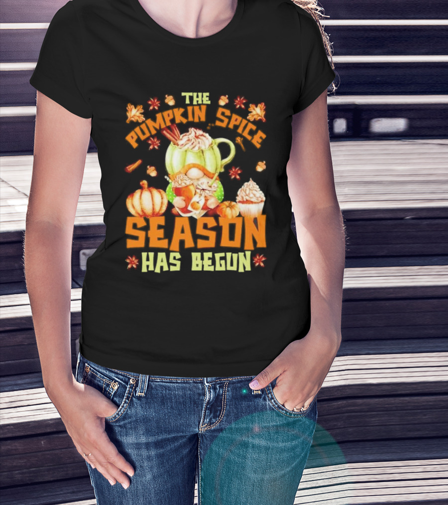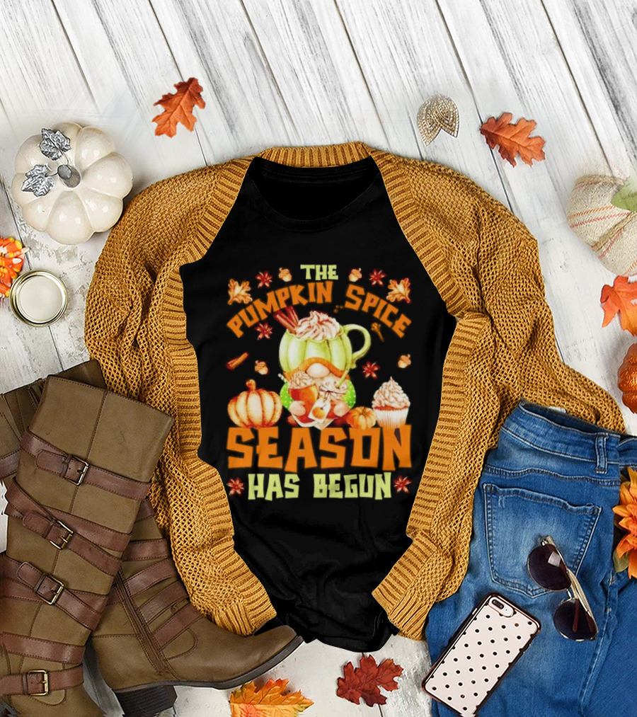 The Pumpkin Spice Season Has Begun Fall Season Gnome Cupcake Pumpkin Leaves T-Shirt