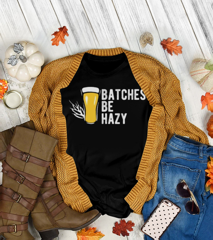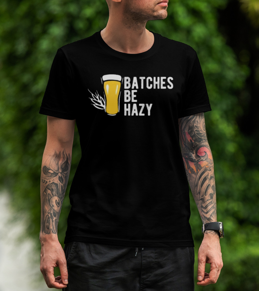 Batches Be Hazy Beer Brewing Glass Icon Hops Leaf T-Shirt