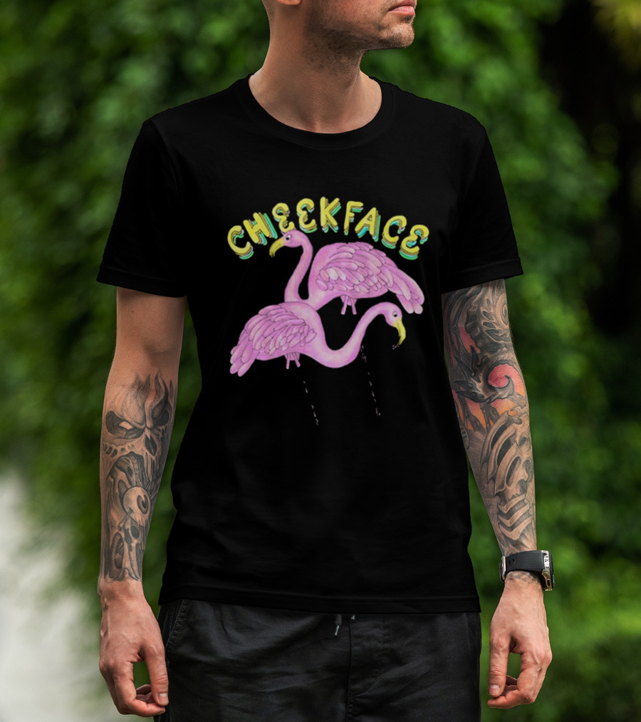 The Cheekface Pink Flamingos T-shirt is designed for everyday wear and a consistent fit. Fabric is pre-shrunk ring-spun cotton with durable stitching. See the size chart below for exact measurements.