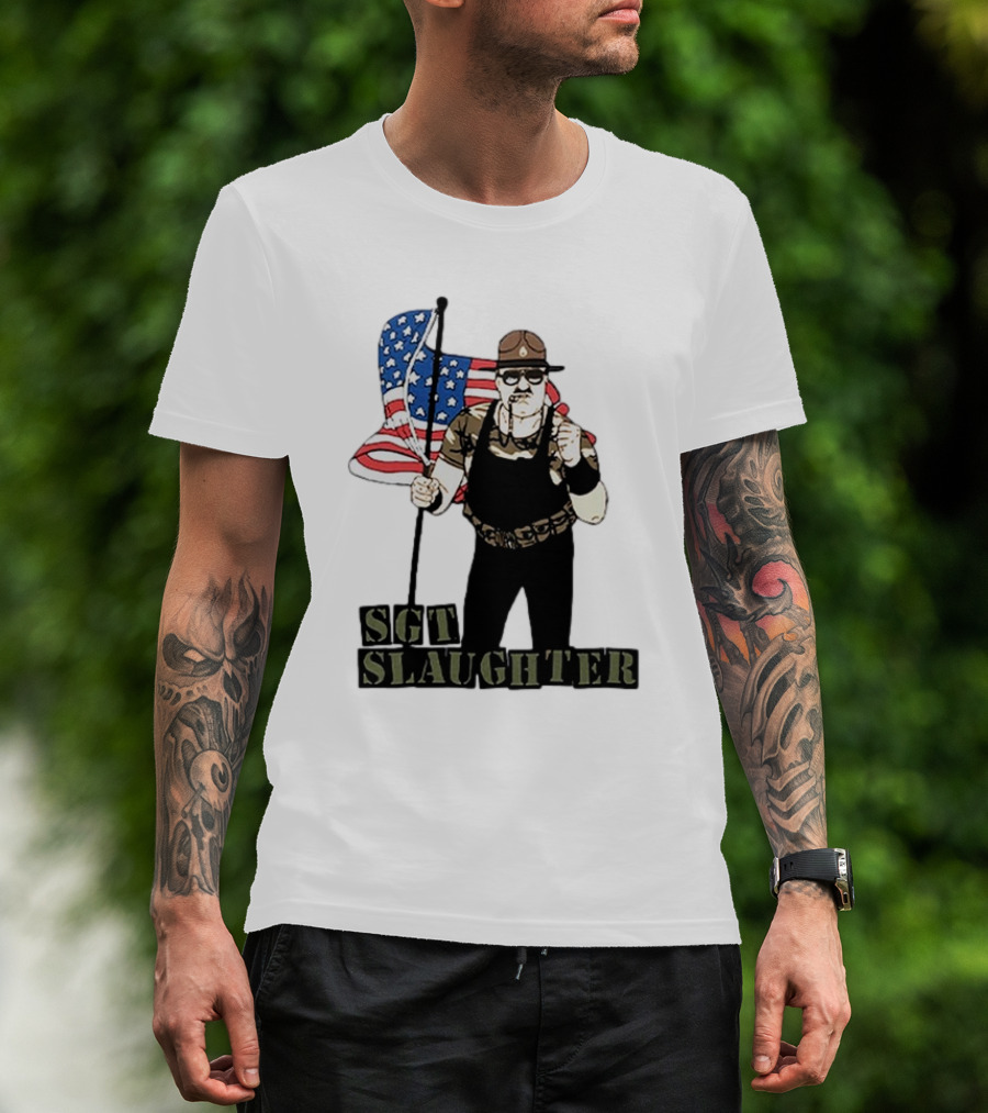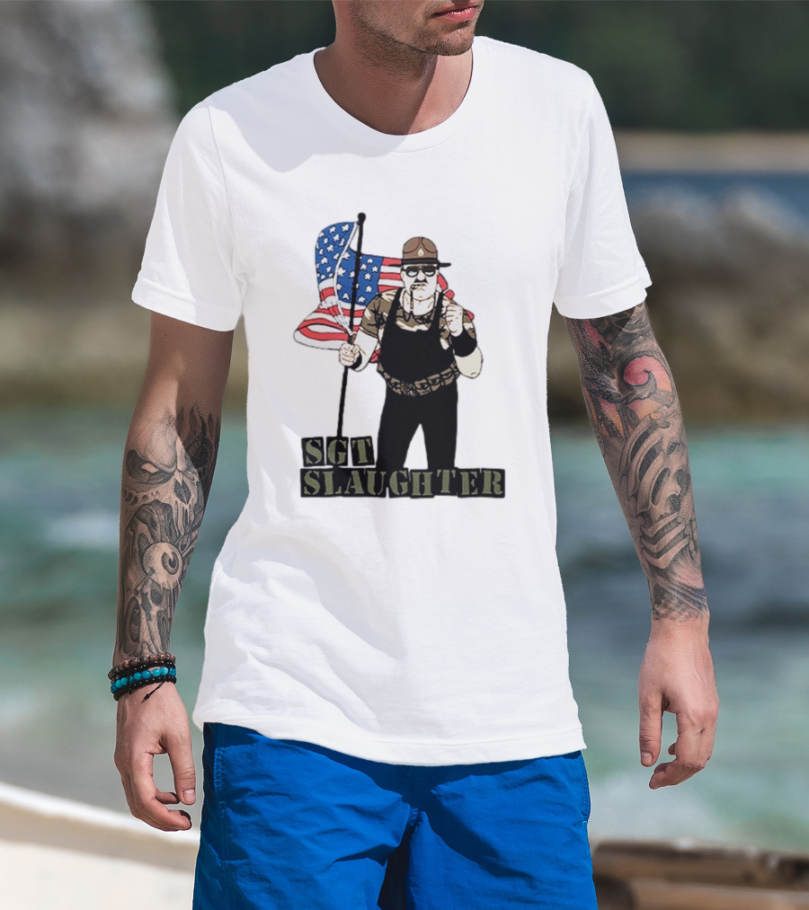 SGT Slaughter Holding American Flag Vintage T-Shirt
