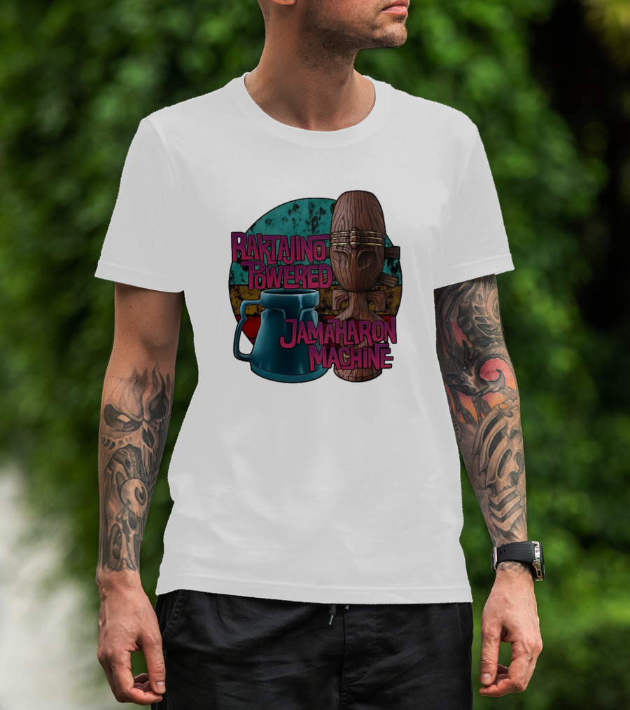 The Raktajino Powered Jamaharon Machine T-shirt is designed for everyday wear and a consistent fit. Fabric is pre-shrunk ring-spun cotton with durable stitching. See the size chart below for exact measurements.