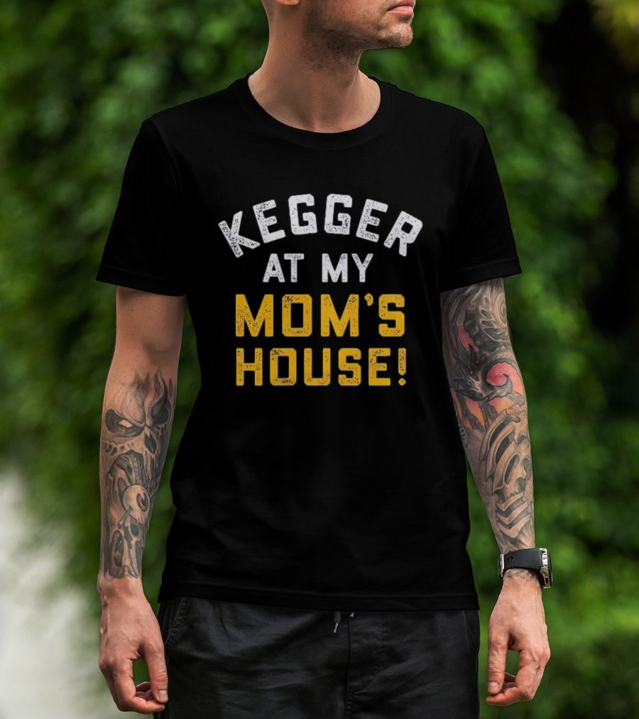 The Kegger at My Mom's House T-shirt is designed for everyday wear and a consistent fit. Fabric is pre-shrunk ring-spun cotton with durable stitching. See the size chart below for exact measurements.