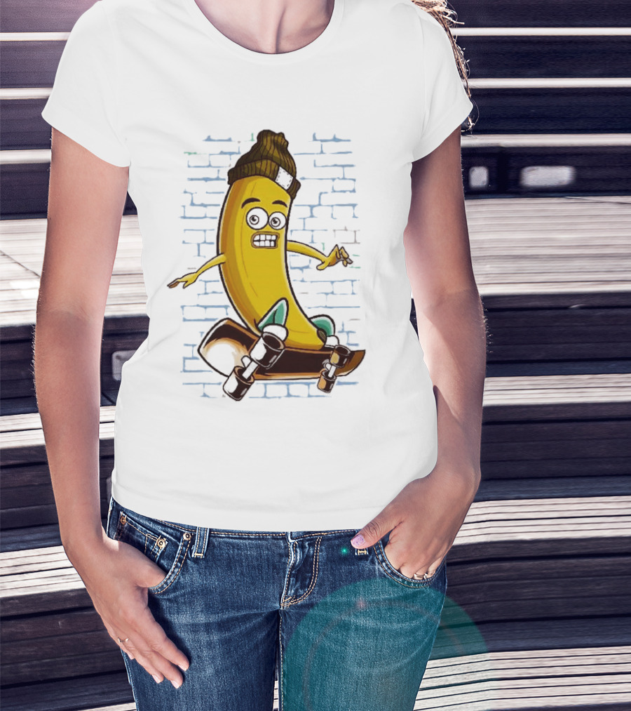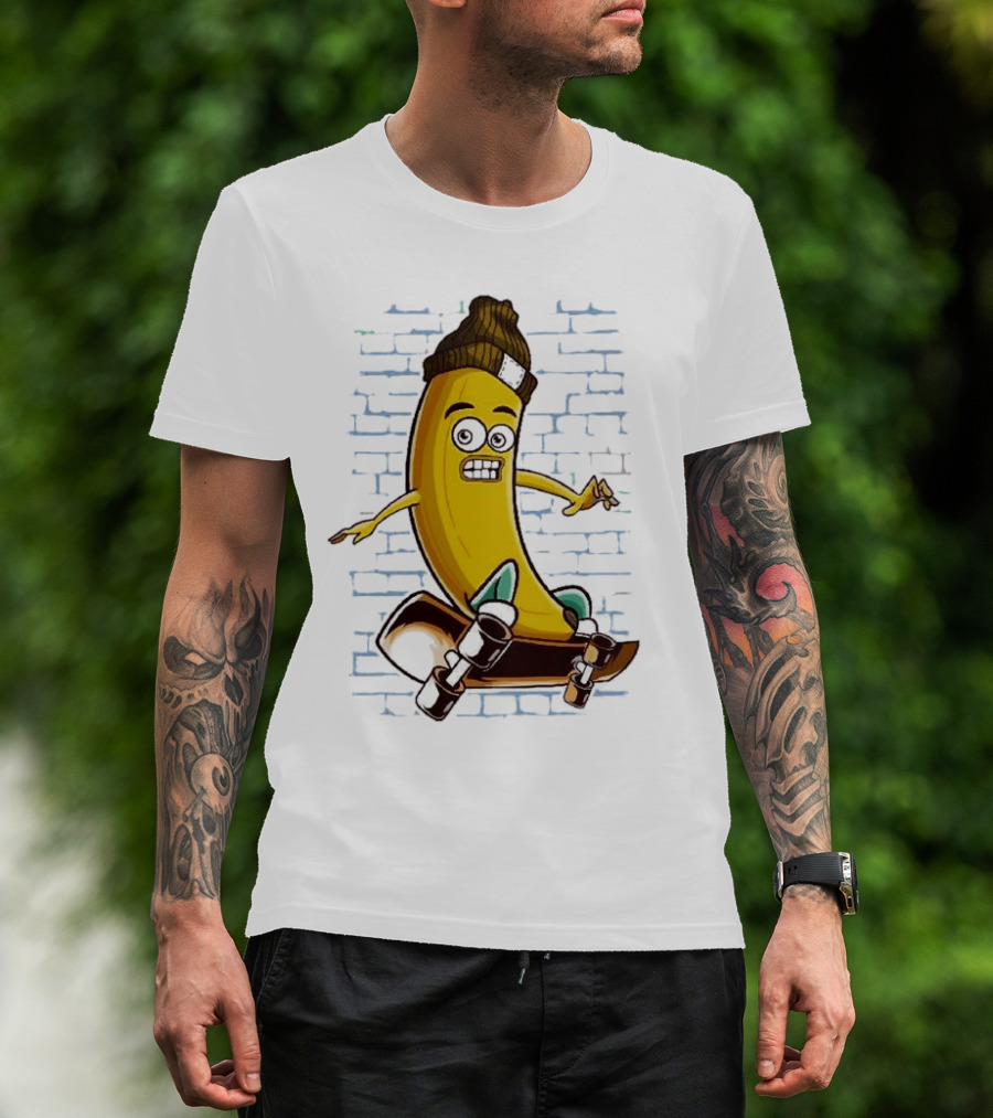 Inktastic Skateboarding Banana Beanie Graffiti Style Skateboard Rider T-Shirt