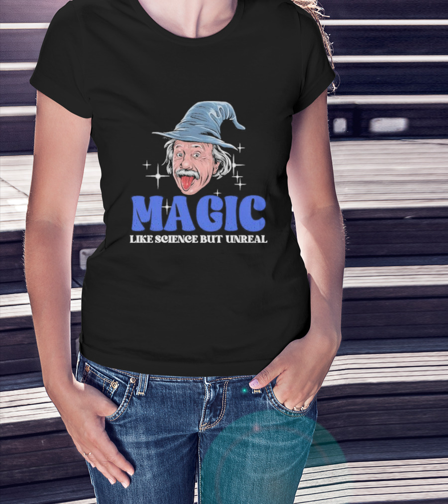 Magic Like Science But Unreal Einstein Wizard Hat Stars T-Shirt