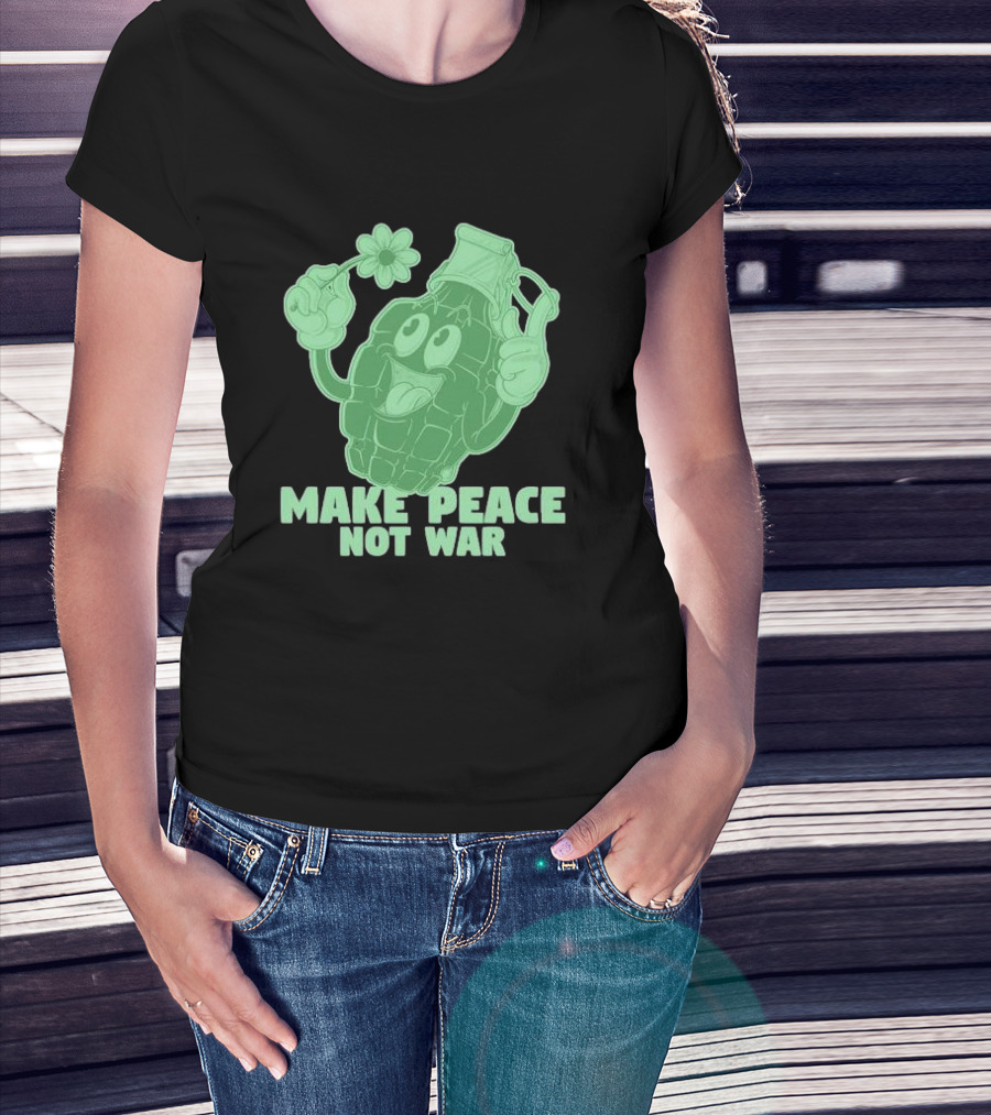 Make Peace Not War Grenade Holding Flower Pacifist Hippie T-Shirt