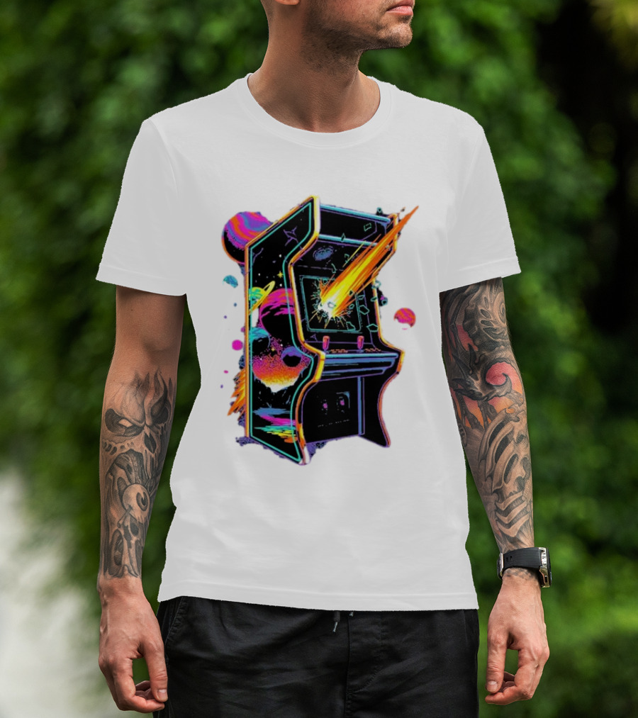 The Arcade Nebula Intotheam Cosmic Retro Explosion T-shirt is designed for everyday wear and a consistent fit. Fabric is pre-shrunk ring-spun cotton with durable stitching. See the size chart below for exact measurements.