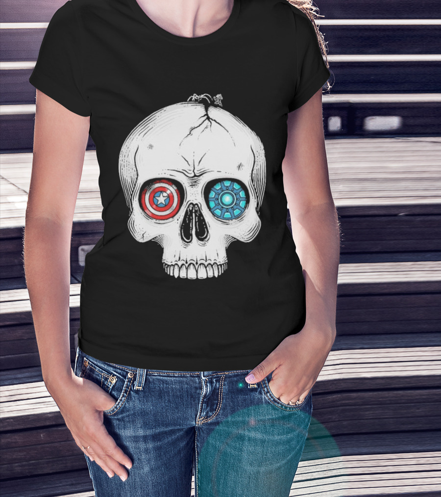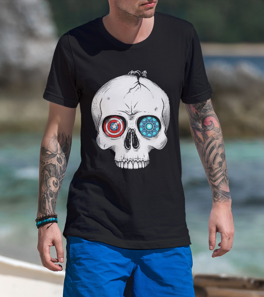United We Stand Captain America Iron Man Civil War Skull T-Shirt