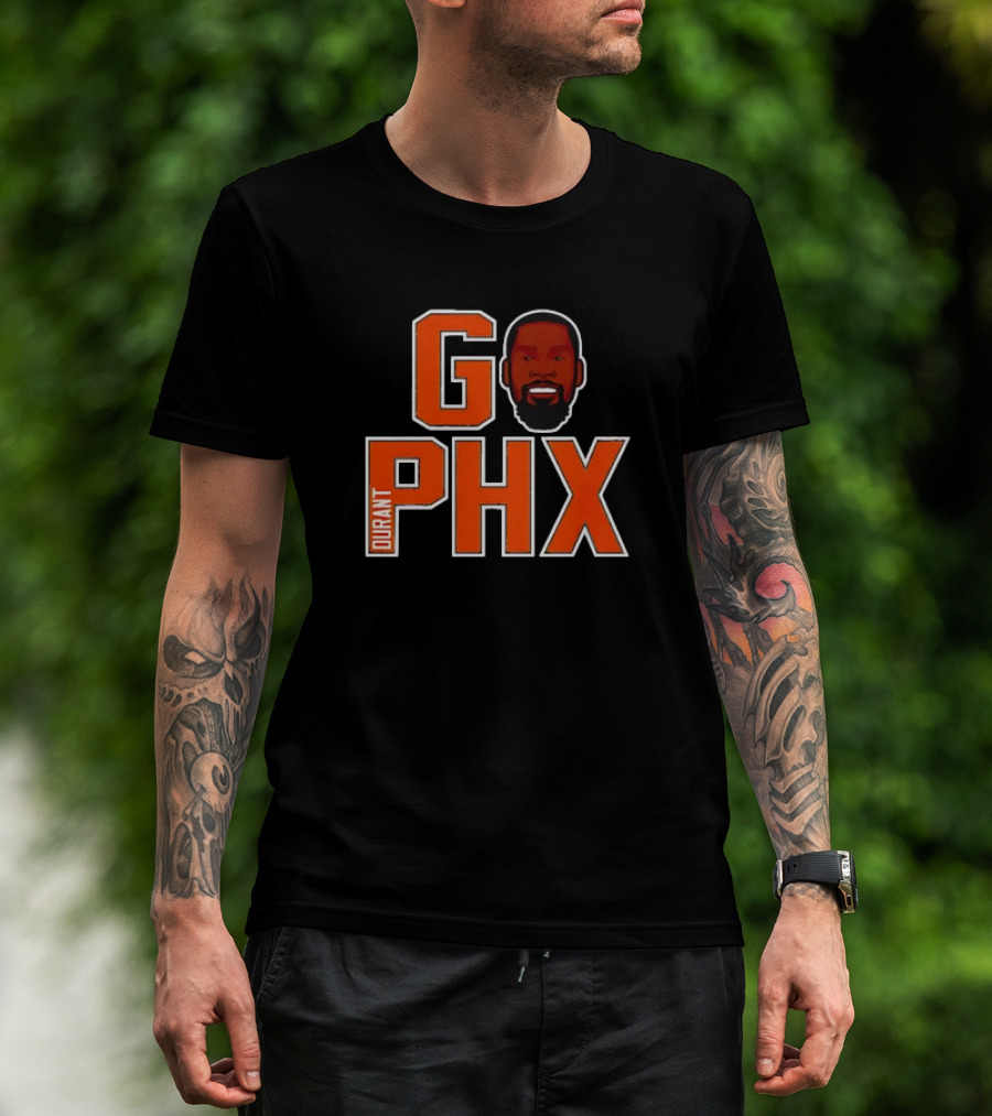The Durant Phoenix Go PHX Basketball T-shirt is designed for everyday wear and a consistent fit. Fabric is pre-shrunk ring-spun cotton with durable stitching. See the size chart below for exact measurements.