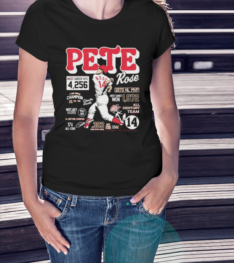 Pete Rose Cincinnati Reds 4256 Career Hits 1973 MVP 3x Batting Champion 17x All-Star T-Shirt