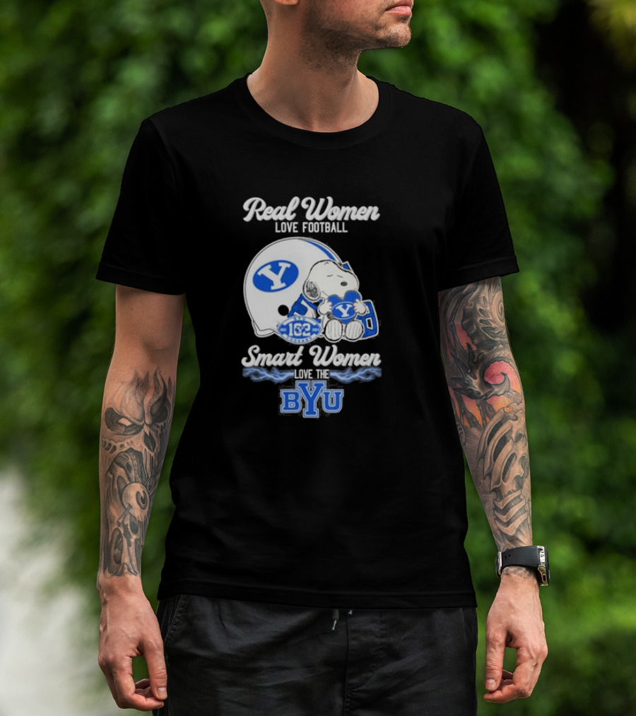 Real Women Love Football Smart Women Love The BYU Cougars Snoopy Helmet Fan 162 T-Shirt