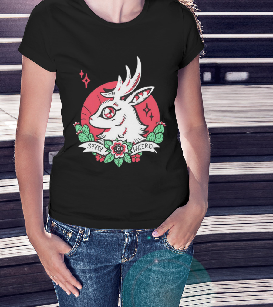 Stay Weird Jackalope Tattoo 03 Cactus And Floral T-Shirt