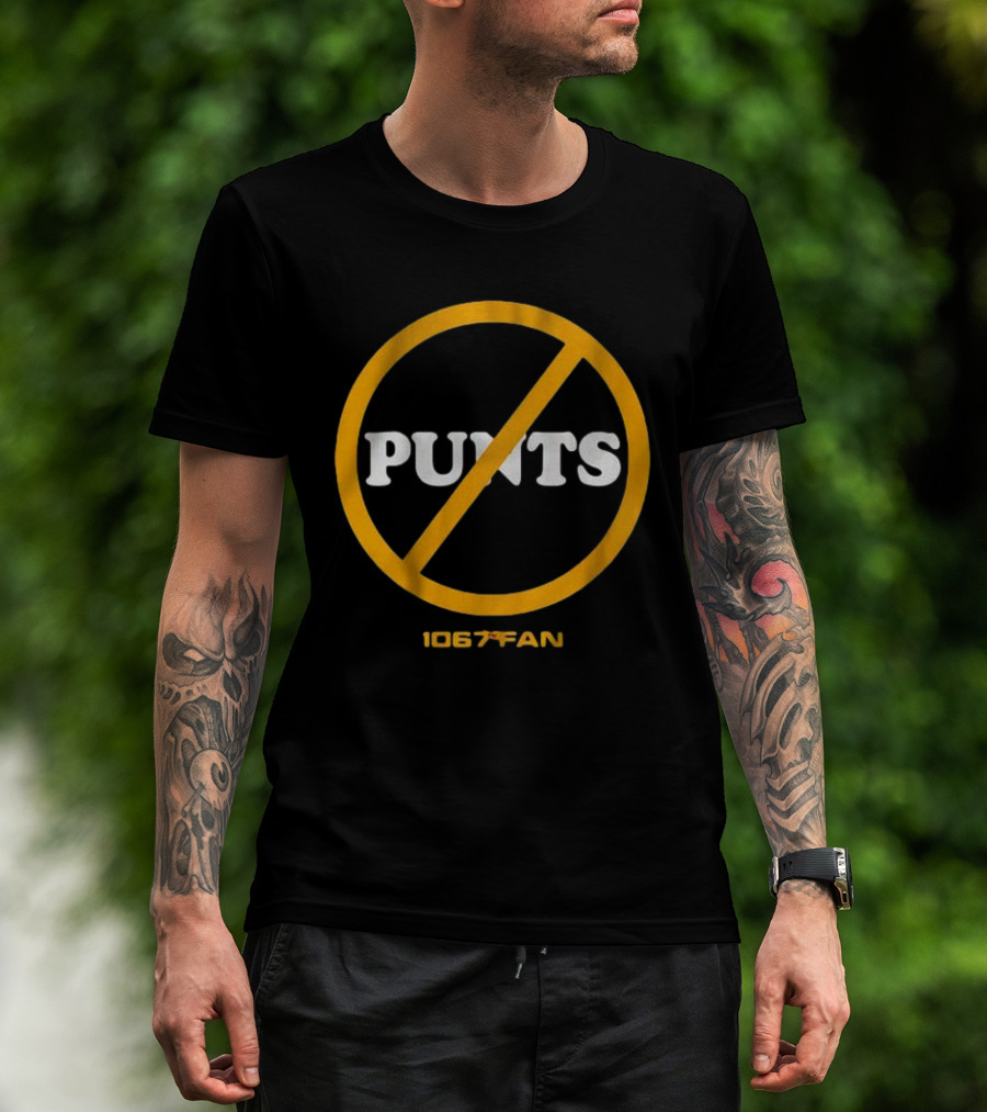 The Washington Football 106.7 Fan No Punts T-shirt is designed for everyday wear and a consistent fit. Fabric is pre-shrunk ring-spun cotton with durable stitching. See the size chart below for exact measurements.