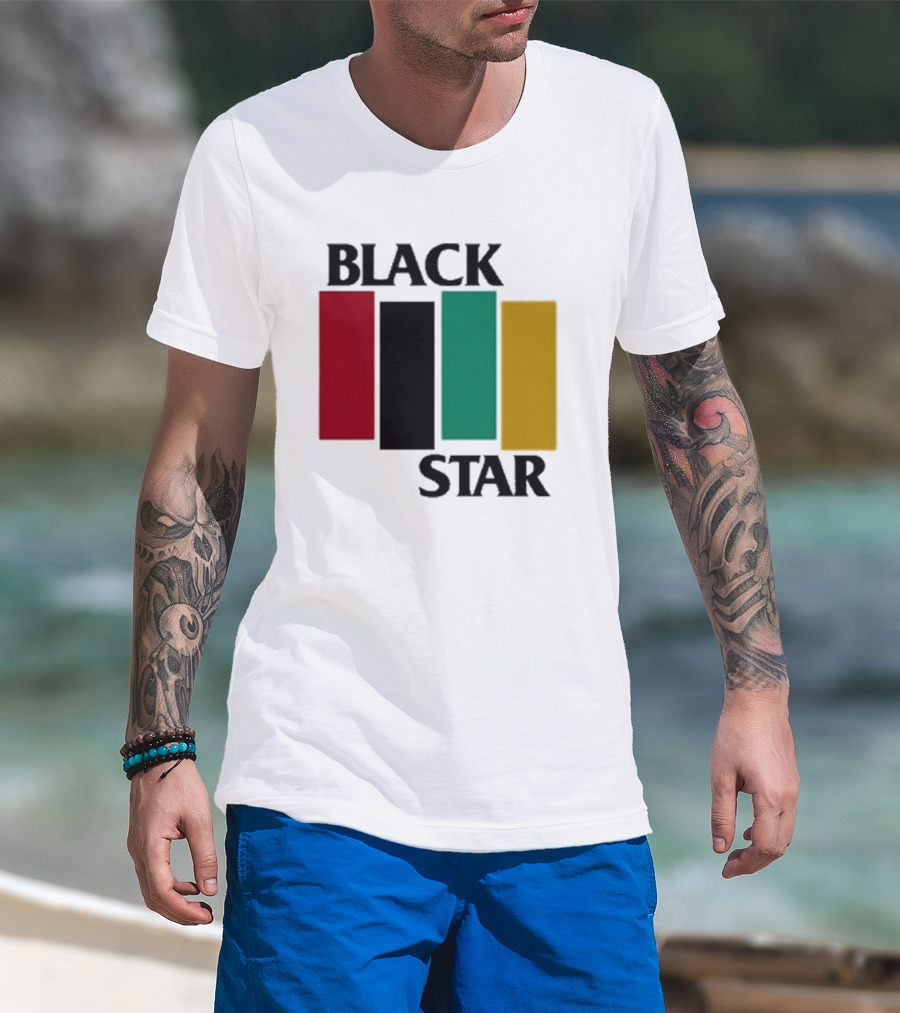 Black Star Flag Red Black Green Gold Vertical Bars T-Shirt