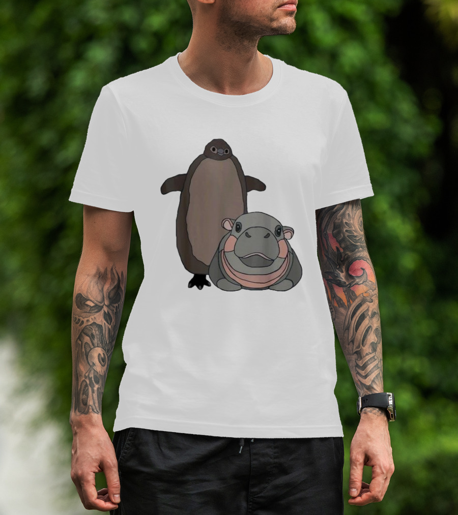 Pesto The Penguin And Moo Deng The Baby Hippo Cartoon Characters T-Shirt