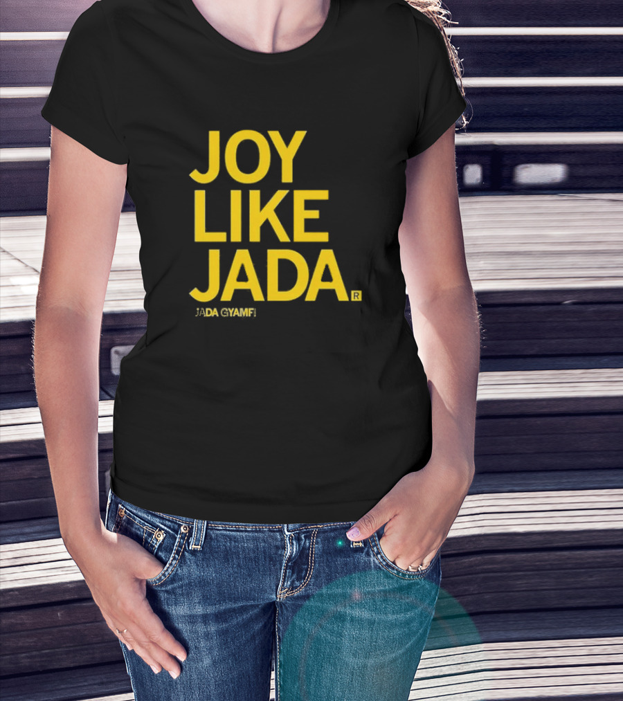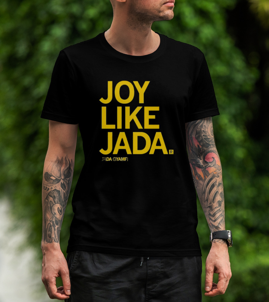 The Jada Gyamfi Joy Like Jada T-shirt is designed for everyday wear and a consistent fit. Fabric is pre-shrunk ring-spun cotton with durable stitching. See the size chart below for exact measurements.