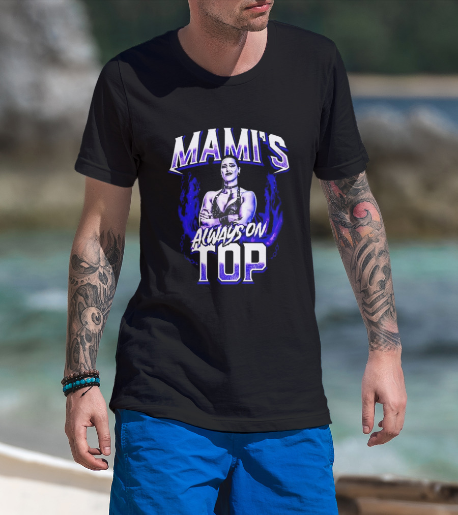 The Mami's Always on Top Rhea Ripley T-shirt is designed for everyday wear and a consistent fit. Fabric is pre-shrunk ring-spun cotton with durable stitching. See the size chart below for exact measurements.