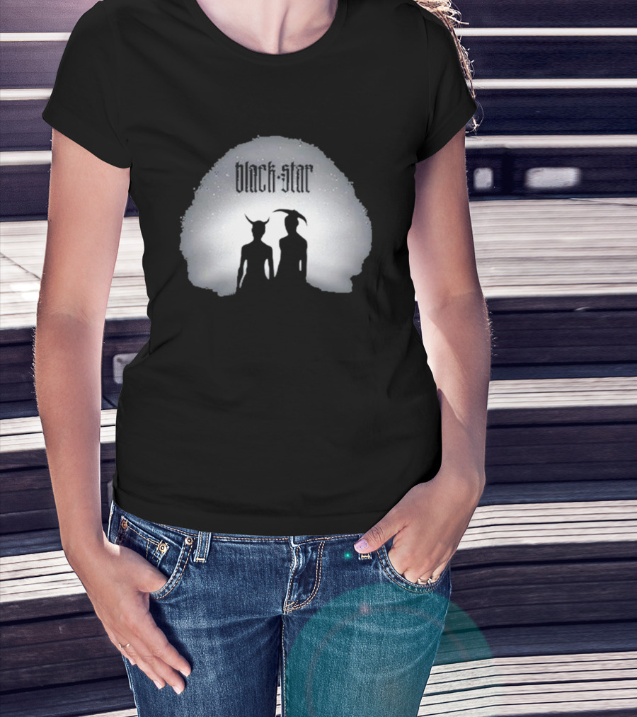 The Black Star Two Dark Figures with Horns T-shirt is designed for everyday wear and a consistent fit. Fabric is pre-shrunk ring-spun cotton with durable stitching. See the size chart below for exact measurements.