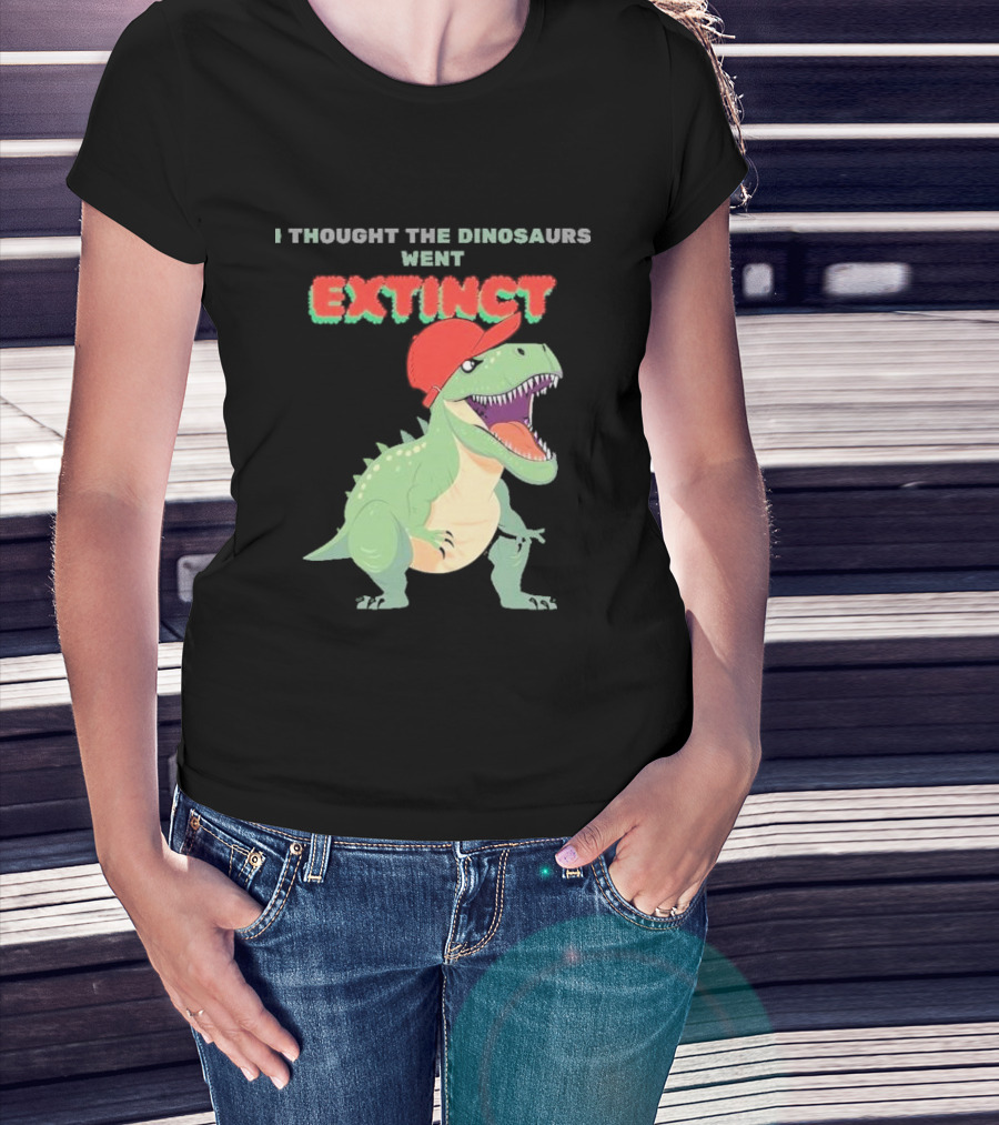 I Thought The Dinosaurs Went Extinct Funny T-Rex With Red Cap T-Shirt