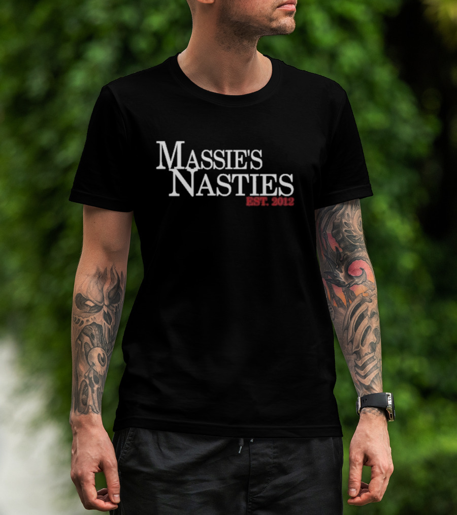 The Massie's Nasties Est. 2012 T-shirt is designed for everyday wear and a consistent fit. Fabric is pre-shrunk ring-spun cotton with durable stitching. See the size chart below for exact measurements.