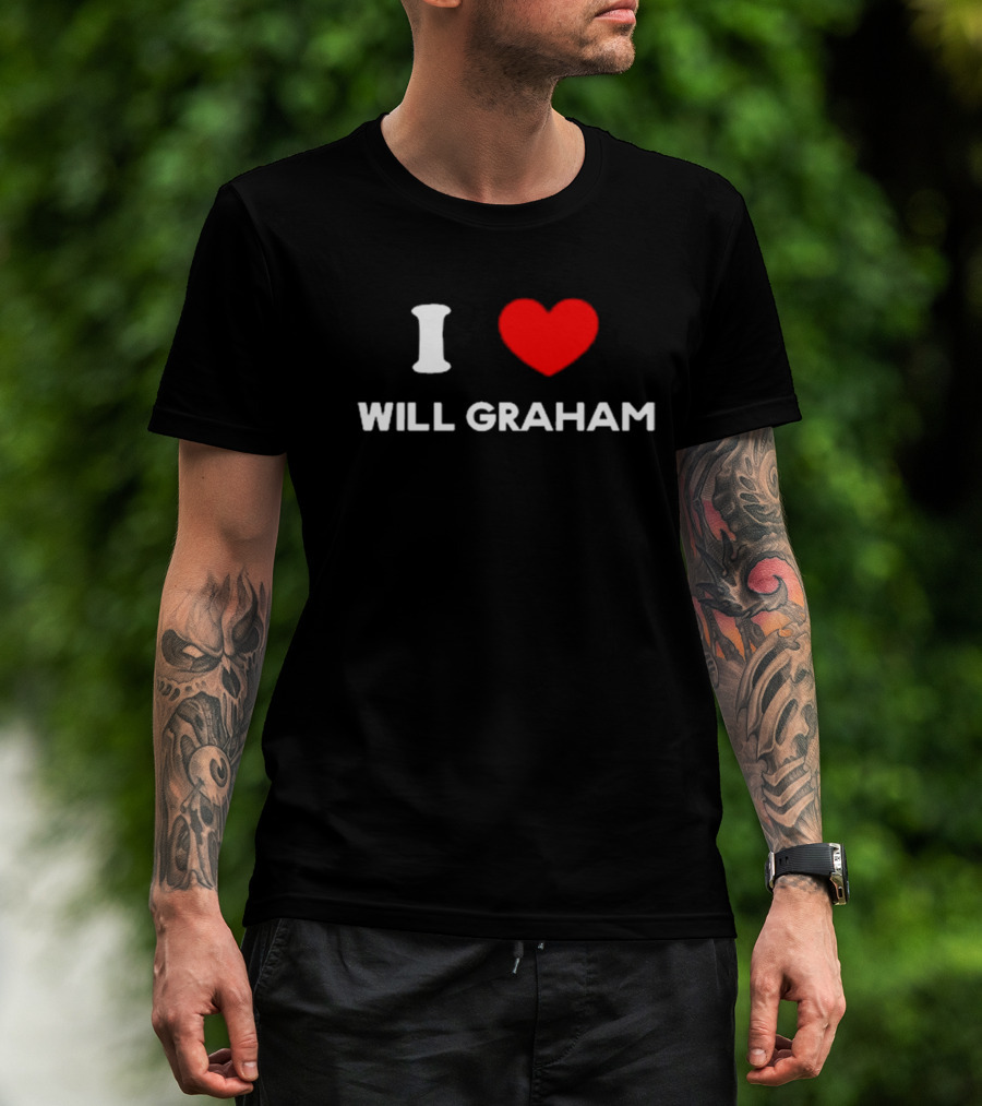 The I Love Will Graham Heart Icon Fandom T-shirt is designed for everyday wear and a consistent fit. Fabric is pre-shrunk ring-spun cotton with durable stitching. See the size chart below for exact measurements.
