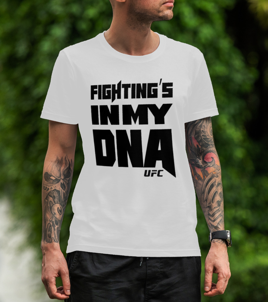 The UFC Fighting's in My DNA T-shirt is designed for everyday wear and a consistent fit. Fabric is pre-shrunk ring-spun cotton with durable stitching. See the size chart below for exact measurements.