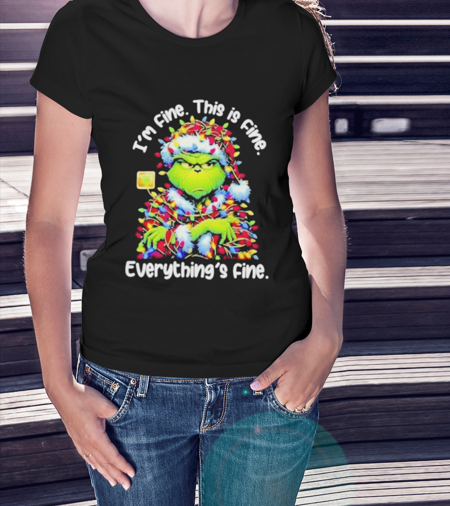 I'm Fine. This Is Fine. Everything's Fine. Grinch Christmas Lights T-Shirt
