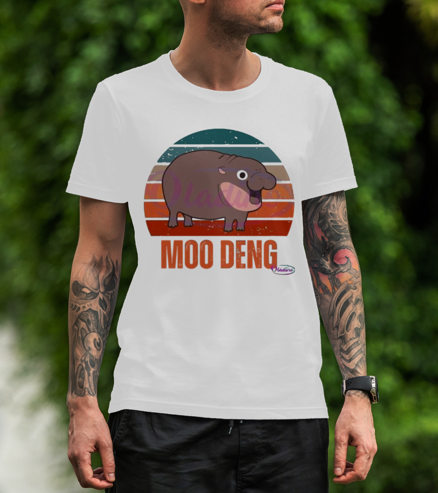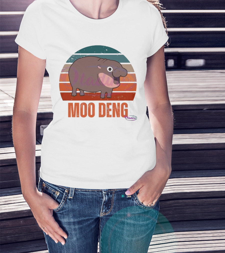 Retro Sunset Moo Deng Pygmy Hippo T-Shirt