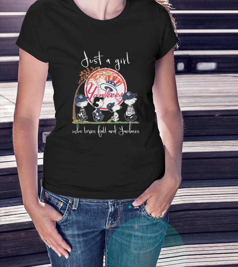 Just A Girl Who Loves Fall And Yankees Peanuts Characters T-Shirt