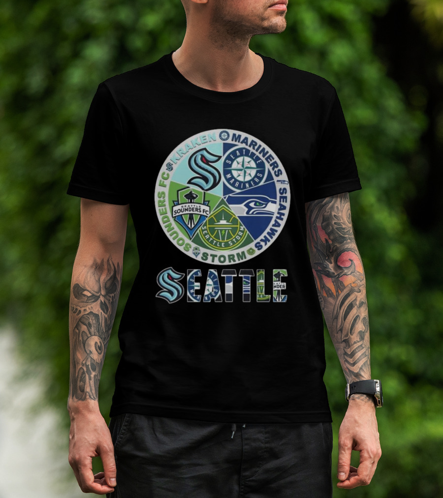 Seattle Kraken Mariners Sounders FC Storm Seahawks Logo T-Shirt