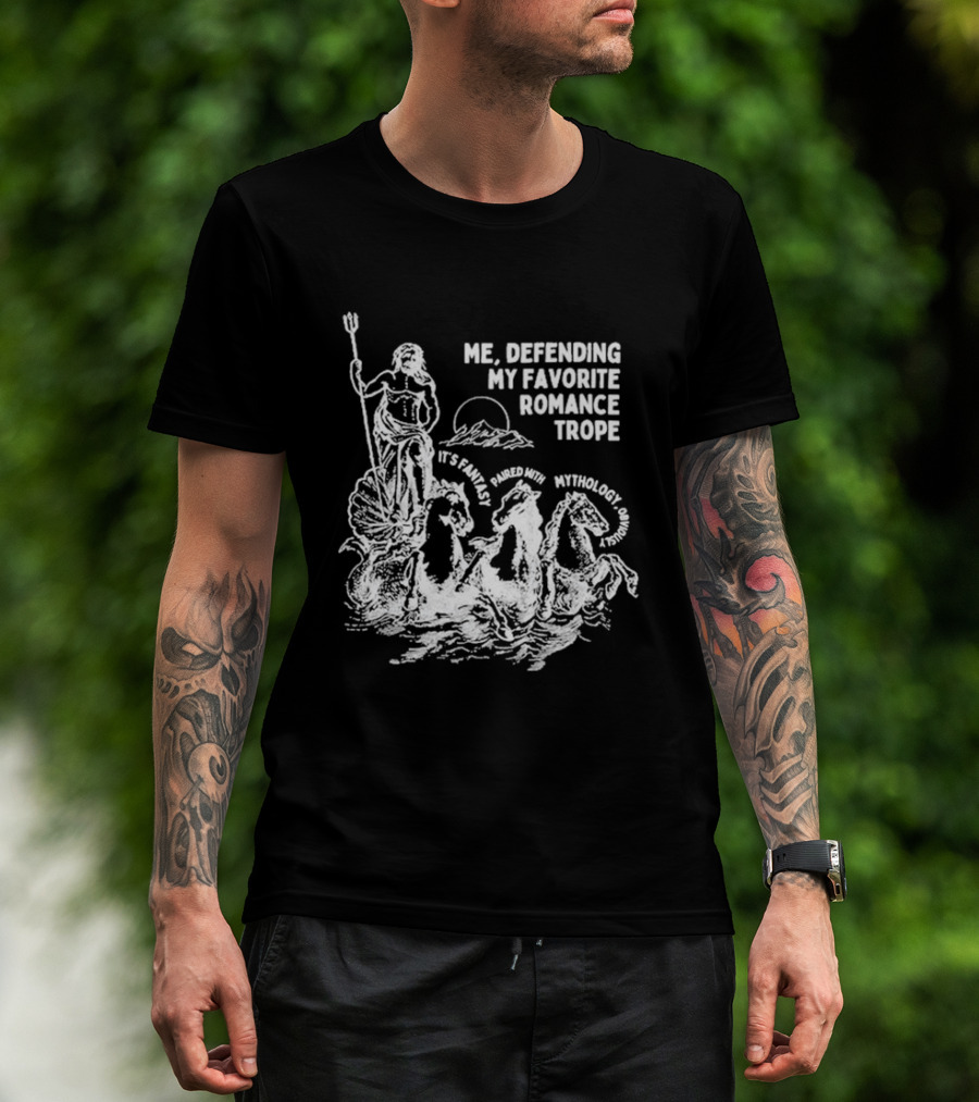 Me Defending My Favorite Romance Trope It's Fantasy Paired With Mythology Opal And June Funny Romantasy T-Shirt
