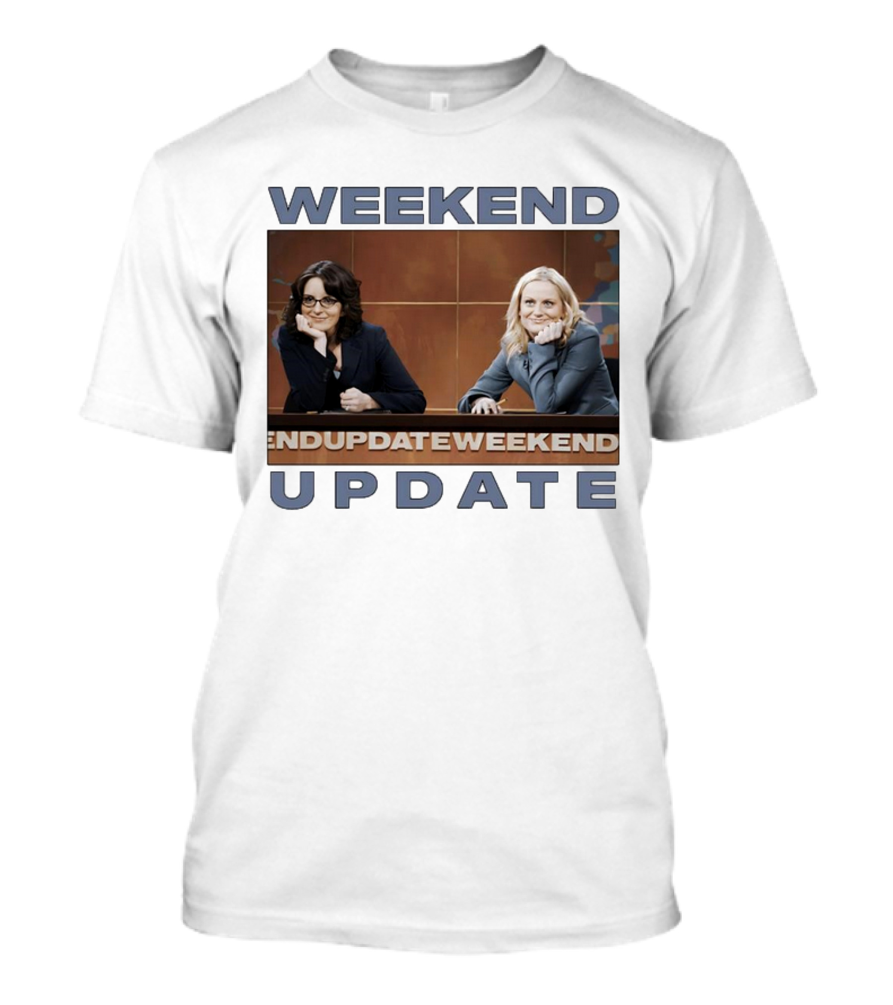 The Weekend Update Tina Fey Amy Poehler Desk T-shirt is designed for everyday wear and a consistent fit. Fabric is pre-shrunk ring-spun cotton with durable stitching. See the size chart below for exact measurements.