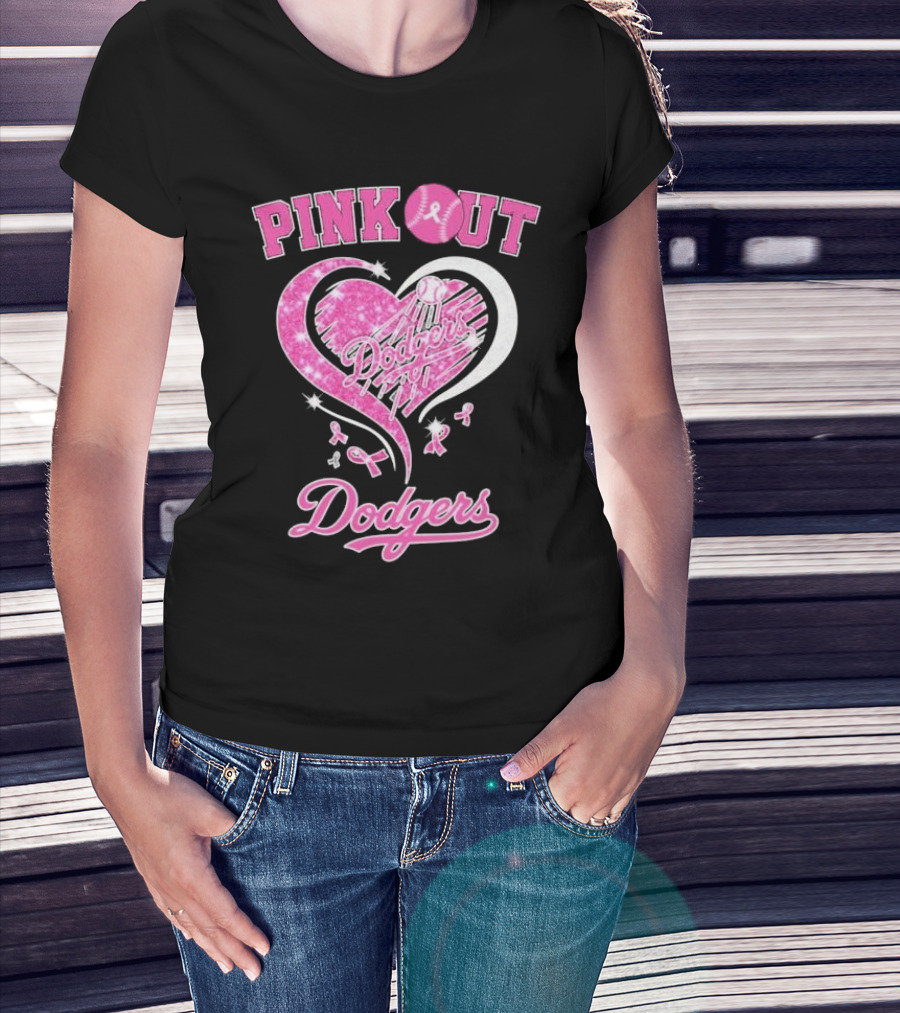 Pink Out Dodgers Heart Breast Cancer Los Angeles T-Shirt