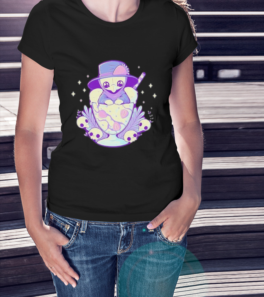 Cute Plague Doctor Ice Cream Delight With Skulls And Stars T-Shirt