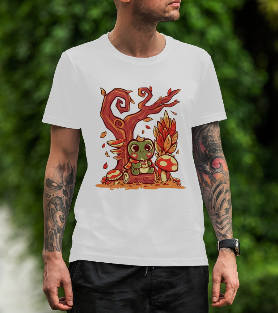 Cozy Autumn Days Cute Frog Enjoying Fall Leaves T-Shirt