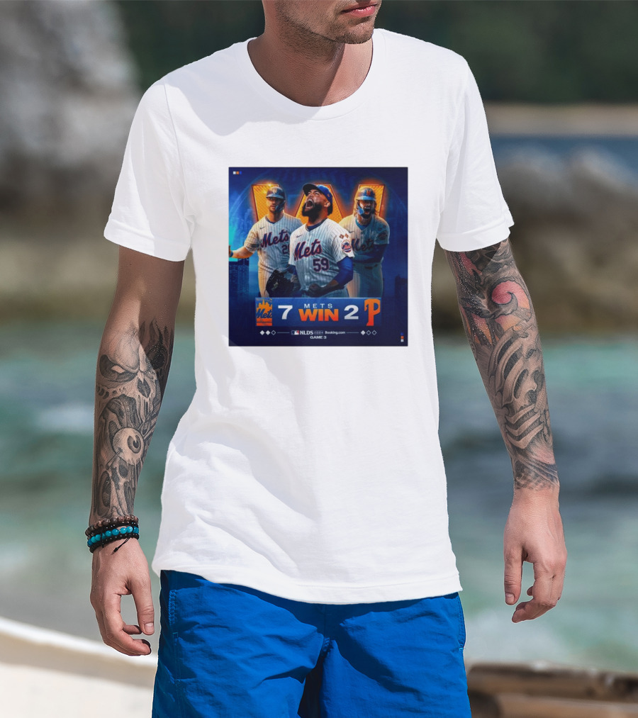 The New York Mets Win 7-2 Against Philadelphia Phillies NLDS Game 3 Mets Victory T-shirt is designed for everyday wear and a consistent fit. Fabric is pre-shrunk ring-spun cotton with durable stitching. See the size chart below for exact measurements.