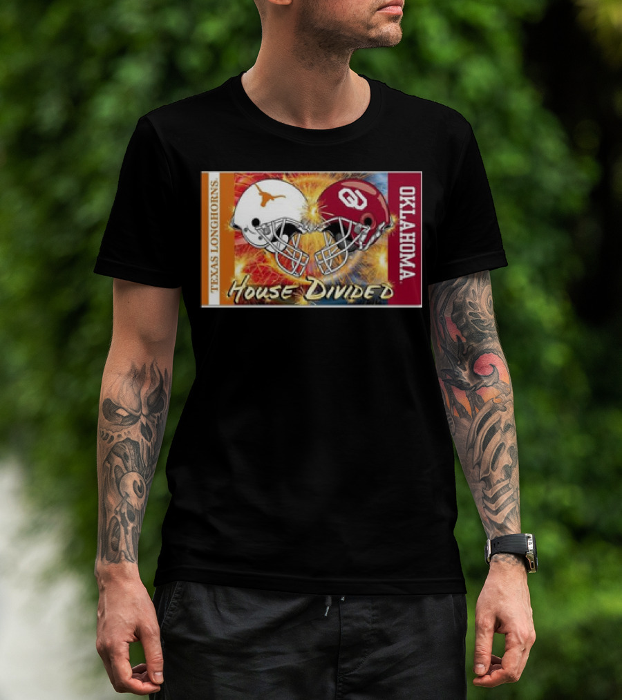 Texas Longhorns Vs. Oklahoma Sooners House Divided Rivalry Banner T-Shirt