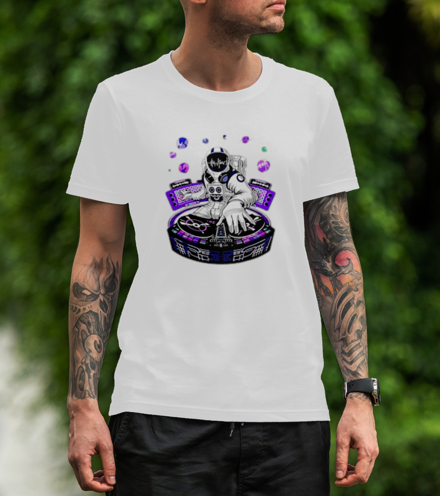 The Astronaut Psychedelic DJ Psytrance Techno EDM Festival Space Music Bubbles T-shirt is designed for everyday wear and a consistent fit. Fabric is pre-shrunk ring-spun cotton with durable stitching. See the size chart below for exact measurements.