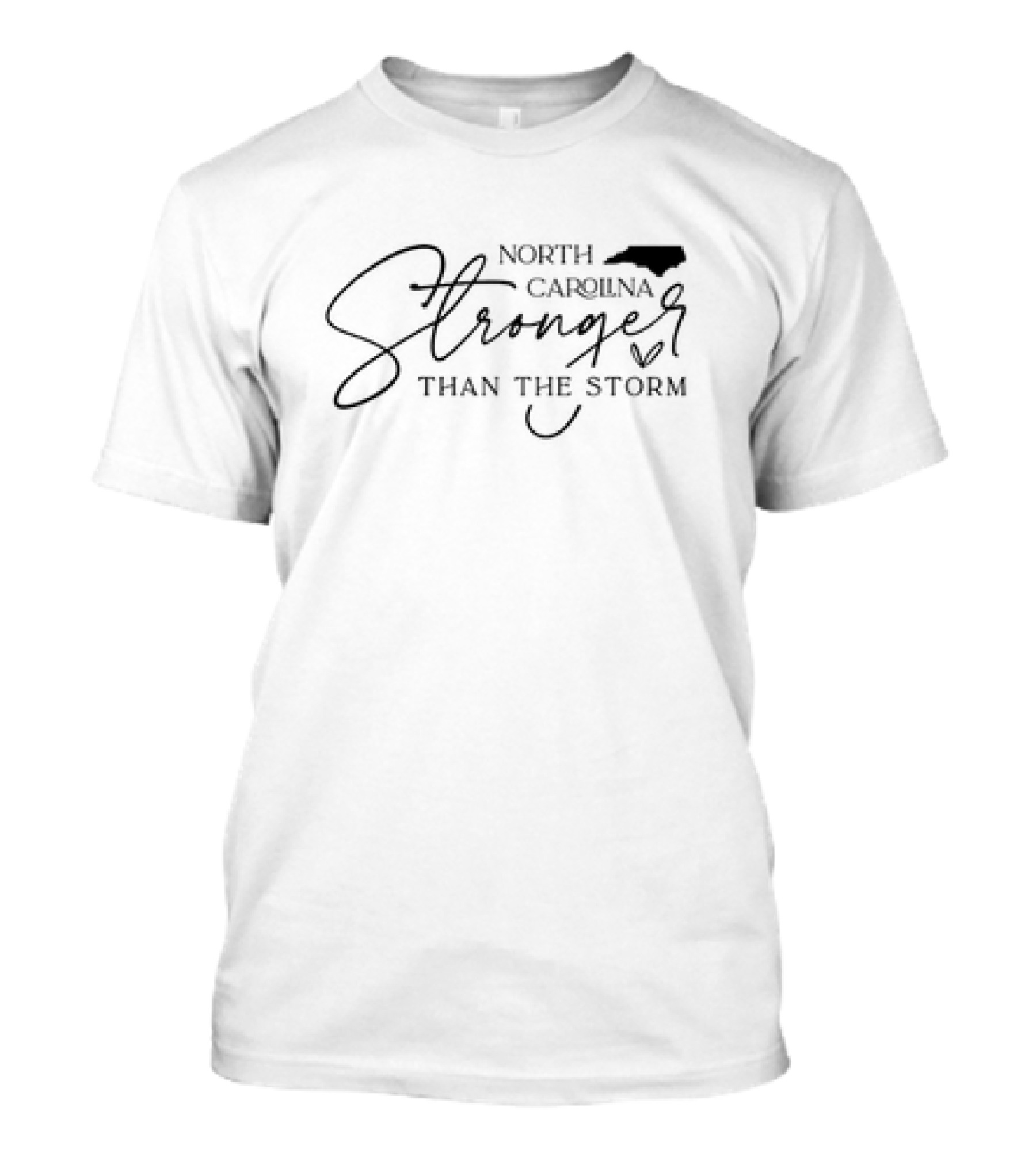 The North Carolina Map Stronger Than The Storm T-shirt is designed for everyday wear and a consistent fit. Fabric is pre-shrunk ring-spun cotton with durable stitching. See the size chart below for exact measurements.
