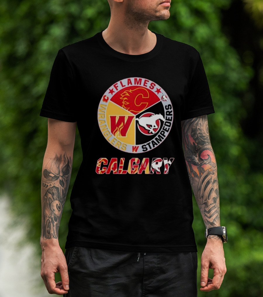 The Calgary Flames Wranglers Stampeders T-shirt is designed for everyday wear and a consistent fit. Fabric is pre-shrunk ring-spun cotton with durable stitching. See the size chart below for exact measurements.