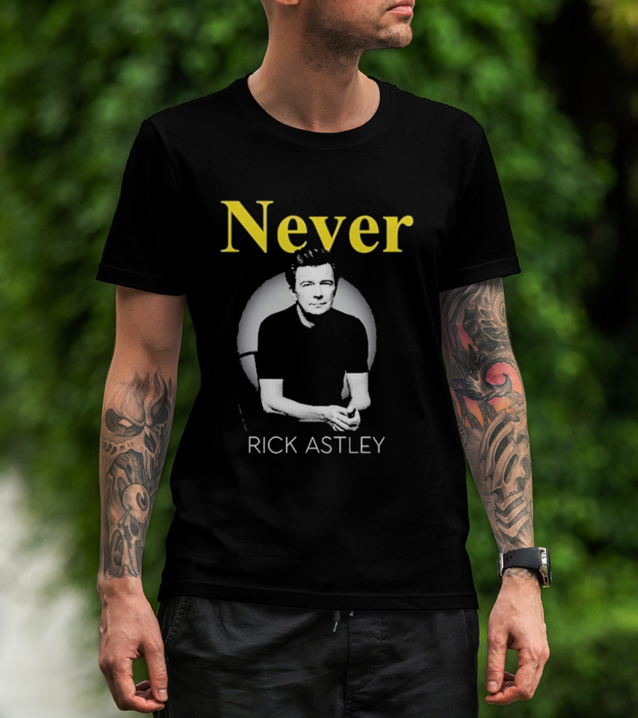 The Never Rick Astley Retro Portrait T-shirt is designed for everyday wear and a consistent fit. Fabric is pre-shrunk ring-spun cotton with durable stitching. See the size chart below for exact measurements.
