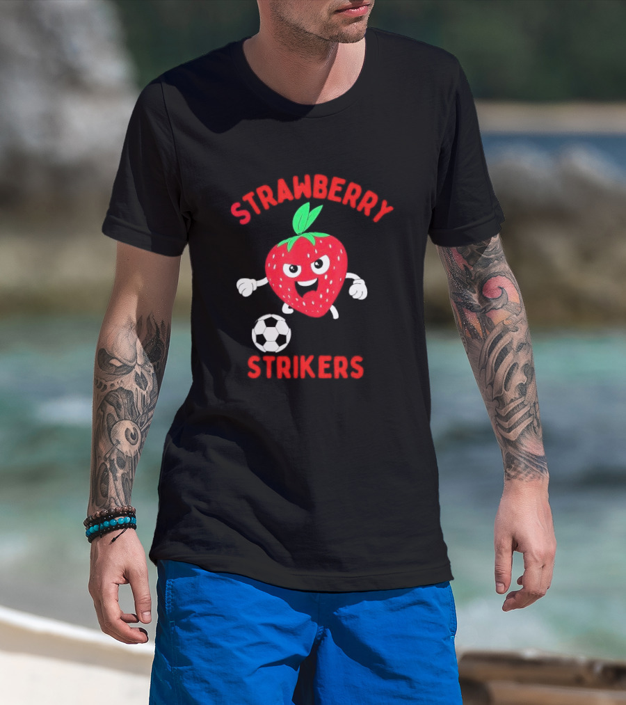 Strawberry Strikers Soccer Team Fun Cartoon With Soccer Ball T-Shirt
