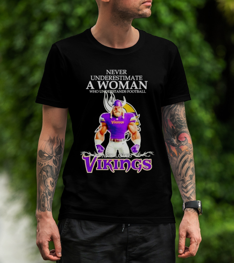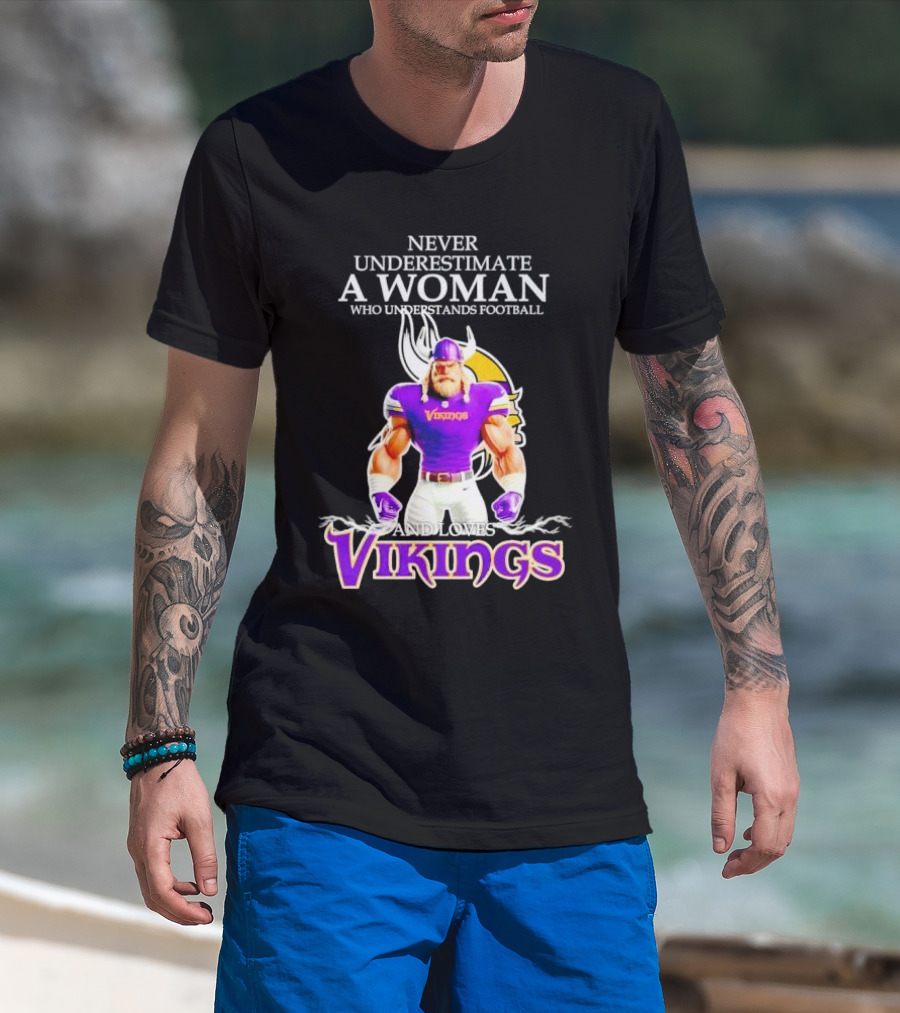 Never Underestimate A Woman Who Understands Football And Loves Vikings T-Shirt