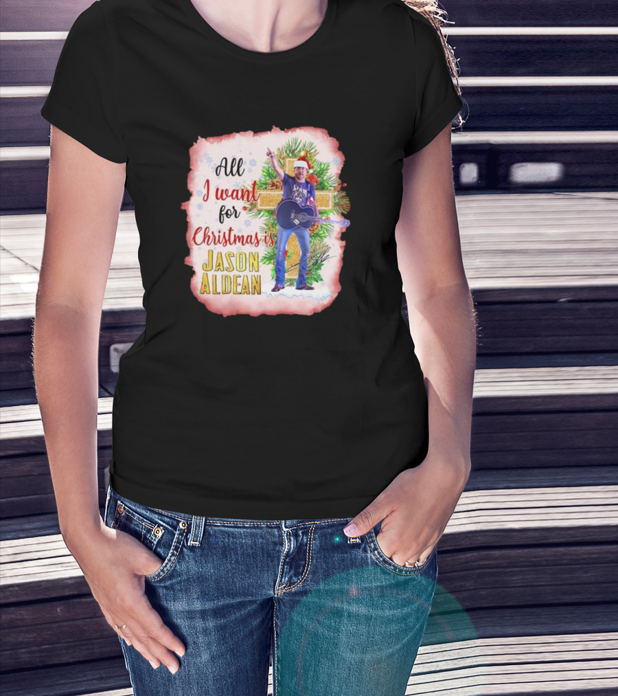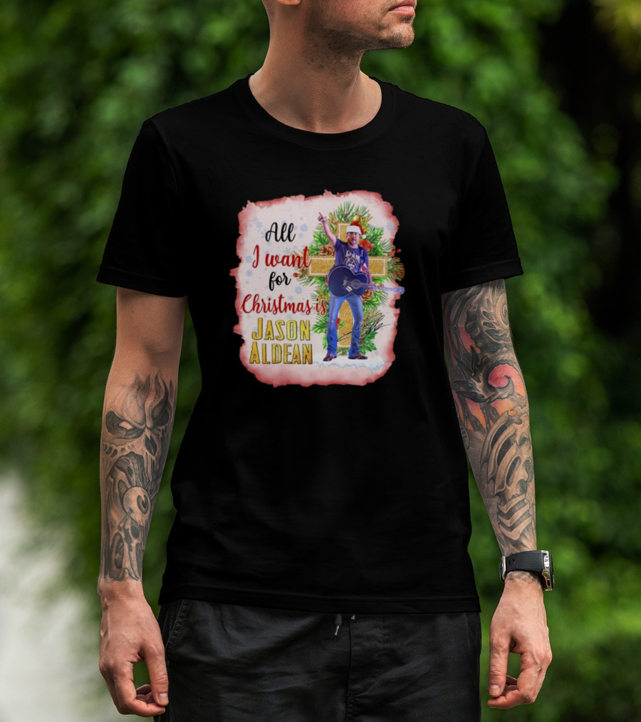 All I Want For Christmas Is Jason Aldean In Santa Hat With Guitar T-Shirt